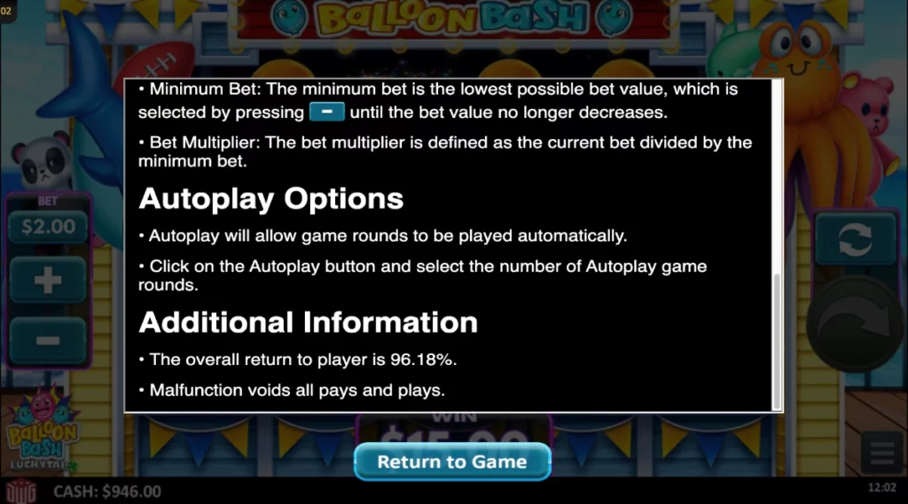After pressing, the ball "bursts" animatedly - with a characteristic visual effect of an explosion, sparkles or confetti, depending on the style of the game - and the winning amount instantly appears in its place. At the same time, a short sound effect or musical signal may be heard, which enhances the feeling of winning or discovery. The player continues to pop the balls until he opens a given number - usually nine or fifteen, depending on the round. After opening all the balls, the game automatically sums up the result: if three balls with the same amount are found, the player wins this amount, which is immediately added to the total balance. If no amount is repeated three times, there may be no winnings or there will be only according to the game's bonus logic. All this is accompanied by bright graphics and cartoon characters around, which creates the atmosphere of a fun fair.